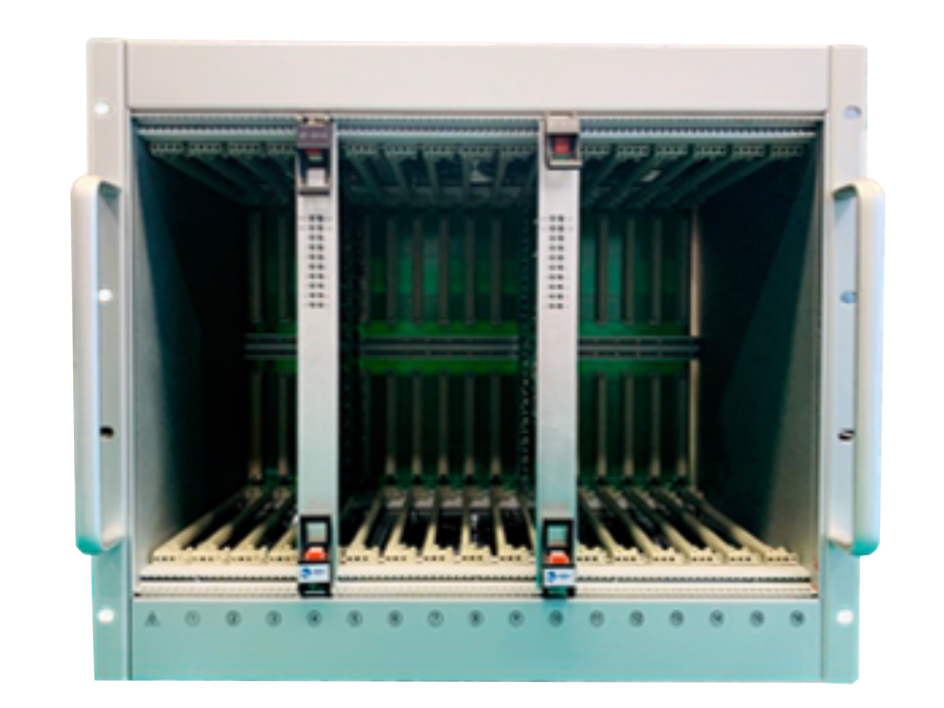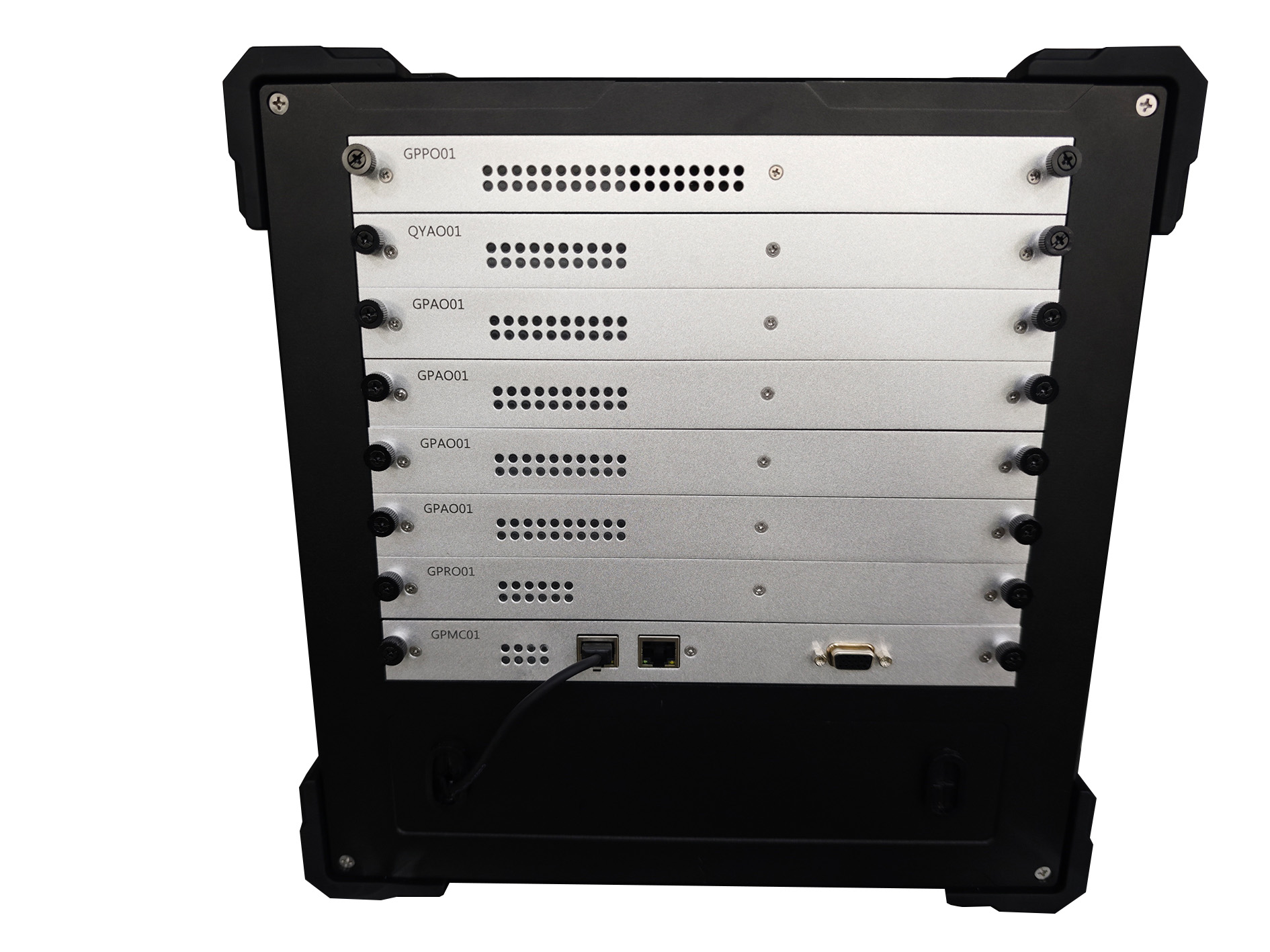 该系统的标准机箱是17槽6U机箱,提供1个系统插槽,以及16个多功能的IO模块混合插槽。系统插槽设计使其能与PC设备进行人机交互,同时提供同步时钟接口,实现机箱同步以及机箱扩展;混合插槽设计使其可兼容任意IO模块插槽,用户可灵活配置。机箱内置16路高速LVDS通讯,支持卡件尺寸为高度6U,宽度5HP。